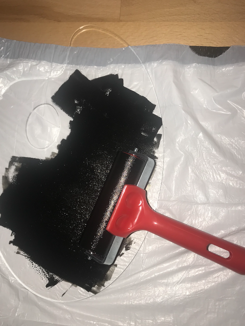 Printing time! Squeeze out a nickel size dollop of ink onto your acrylic palette. Use your roller to thin it out into an even thickness. Make sure your roller is completely covered in a thin layer of ink. If there is too much ink on your roller, your stamp will bleed outside of the edges of your design on your paper. Next, roll your ink onto your stamp evenly, making sure not to get any ink outside of your design. Then, place your stamp face down on your card where you'd like. If you’re planning to fold your paper into a card, make sure to stamp it on the outside, right side of the paper. Press down hard and evenly on your stamp for 10-20 seconds. Then, reveal your design! If there is any extra ink where you don't want it, just shave away more of the linoleum. Once you're satisfied, print as many as you'd like, adding more ink when needed!